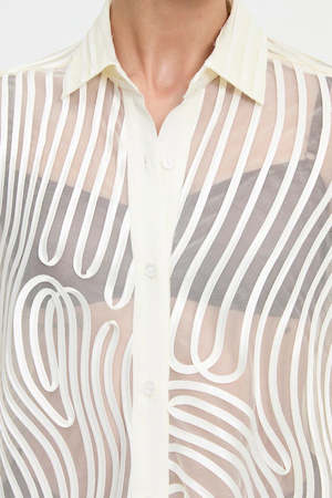 A sheer long-sleeve shirt with a relaxed silhouette and classic collar. Crafted from lightweight semi-sheer fabric with a fluid drape. Finished with wide cuffs and a concealed button front. Designed to move and layer with ease. - Classic collar - Concealed button front - Long sleeves with wide cuffs - Semi-sheer lightweight fabrication - Relaxed silhouette Details 100% Cotton Sizing XS: Centre Back Length - 75.5cm Chest - 146cm Hem - 133cm Sleeve Length - 46.6cm S: Centre Back Length - 77.5cm Chest - 154cm Hem - 141cm Sleeve Length - 48.6cm Model 1 height is 177cm / 59 and wears a size S. Model 2 height is 178cm / 58 and wears a size S.
