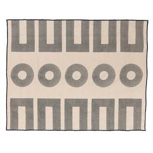 Your new staple. The perfect flax ground color with hand block printed iron black detail, this tablecloth is stylish with a capital S. Set it for dinner but leave it there for the rest of time. Just gets softer and lovelier with wear and tear. 70 x 90 inches 55% Linen, 45% Cotton Hand block printed by 5th generation master printers in Jaipur. To make the block printed fabric, each design is traced onto a wooden slab, which then is carved by hammer and chisel into a printing block. The block is then printed meticulously by hand using soft, AZO-free, non toxic pigment. Variation in printing & color are hallmarks of hand block printing and dyeing in small batches. Machine wash cold gentle cycle with like colors. Lay flat to dry or tumble dry low. Iron on appropriate setting if needed.