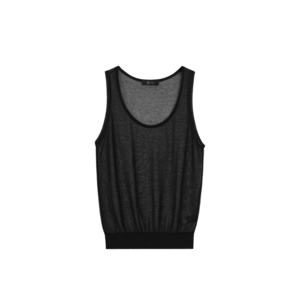 Designed with a deep U-neckline, this sleeveless knit offers versatile styling potential, pairing effortlessly with a range of inner layers. Crafted from a subtly sheer fabric, it adds a refined touch of texture and dimension to any look. 69% Cotton, 31% Nylon Height 177cm / Bust 29" / Waist 21" / Hips 34" Model wears a size M.