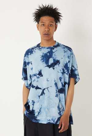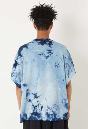 Designed with a relaxed, wide silhouette and French sleeves for effortless comfort, this unisex indigo shibori t-shirt is crafted from a premium cotton-modal blend that feels exceptionally soft against the skin. The Eight Rock Smooth knit construction features a double-stitch weave that creates subtle space between fabric and body, delivering superior breathability, elasticity, and a gentle touch. The cotton-modal blend adds extra fluffiness and softness while maintaining durability. Each piece showcases the distinctive Murakumo shibori patterna traditional hand-squeeze dyeing technique where craftsmen carefully manipulate the fabric to create unique indigo textures. No two pieces are identical, making this a truly individual garment. The wide cut naturally molds to your body when worn, offering a flattering fit that looks intentional and refined. Made in Japan with meticulous attention to detail. Care: Indigo naturally fades and may transfer to lighter fabrics. Wash separately, avoid folding to prevent crease marks, and store away from light to preserve color longevity. 50% cotton; 50% modal. Made in Japan. S: Length 67 cm, width 76.5 cm, center of back to sleeve tip 37.2 cm. M: Length 70 cm, width 79 cm, center of back to sleeve tip 39.2 cm. Model height 182 cm, wearing size M. Precautions: This product is made with indigo-dyed material, so the color will fade from dark blue to light blue with repeated wearing and washing. Avoid wearing it with white or light-colored items or layering it with other items as the color may transfer. Please wash it alone as the color may fade during washing. Please store it away from light. If you leave it folded, the creases may fade.