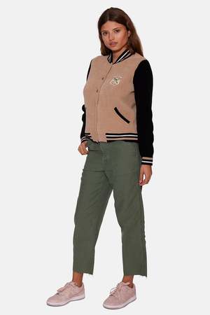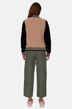 - Color: Camel Combo - Polo patch on chest - knitted sleeves / knitted V-neck line - Black Sleeves with Camel body - Side pockets - Snap button closure - Ribbed Stripped hem - Blue&Cream Exclusive - Style #: F7735 Mpn F7735