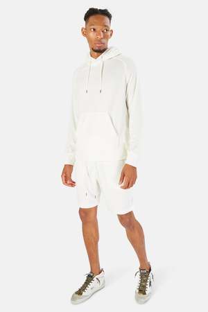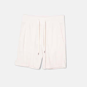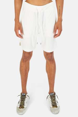 - Color: Chic Cream - Custom-milled super soft light weight terry - Elasticated drawstring waist - Side slant pockets - Back patch pocket - 45% Cotton, 35% Polyester, 20% Rayon - Made in USA - Machine wash cold