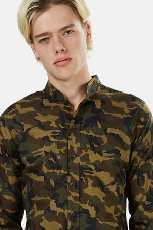 The new Mandarin with shortened 1.5" collar can be worn in the style of Dries Van Noten buttoned up for an edgy dress up look or sized up and worn over a tee for an overshirt styling with raw denim. - Color: Camo - Fabric: 100% Cotton - Made in NYC - Dry Clean Only * Model is 6'1" wearing a size M Productcode BCM-51 Designer BLUE&CREAM