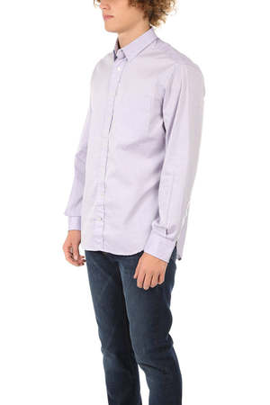 Our very own update on classic button down silhouette. A sophisticated fold-in collar portrays a clean formality without the discomfort and hassle of a tie, while a soft breathable cotton feels as if your'e cheating the look of a structured well-tailored shirt. - Color: Lavender - 100% Cotton - Made in USA - Machine Wash Cold * Model is 6'1" wearing a size L Productcode PRIVC-18 Designer BLUE&CREAM