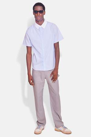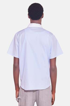- Color: Pale Blue - Made from fine poplin fabric - Button up closure - Traditional spread collar - Made in NYC - Can pair with Poplin Karate Pants Pants for a matching set - Composition: 100% Cotton - Hand wash cold - Do not bleach - Do not tumble dry - Lay flat to dry - Dry cleanable - Style #: WVBCM2483T - Style #: WVBCM2483T-WCLR Mpn WVBCM2483T Sku BNCMSU24-76