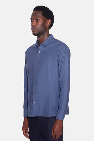 Classic button-up shirt with a "flannel feel", in 100% Italian brushed cotton. Signature Blue&Cream straight collar featuring mother of pearl buttons. Slight rounded straight hem ideal for wearing untucked. Slim fit. Perfect for layering or will speak for itself on its own. - Color: Blue Houndstooth - Traditional spread collar - Button up closure - Fitting perfectly true to size - Model is 6'3" and is wearing size Large in Slim Fit - Composition: 100: Cotton - Made in NYC - Do not machine wash or tumble dry - Dry clean - Style #: WVBCM2489T
