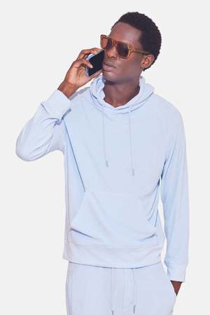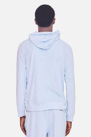 - Color: Baby Blue - Custom-milled super soft light weight terry - Tailored, close to body fit - Saddle sleeve - Self hood / kangaroo pocket - Self reversed cuff & hem - 45% Cotton, 35% Polyester, 20% Rayon - Machine wash cold - Made in New York Mpn WVBCM2451T Sku BNCMSU24-84