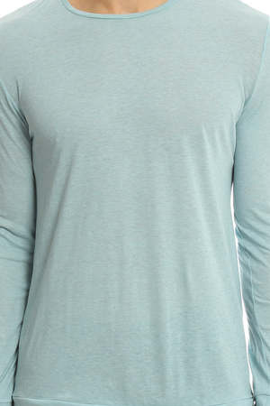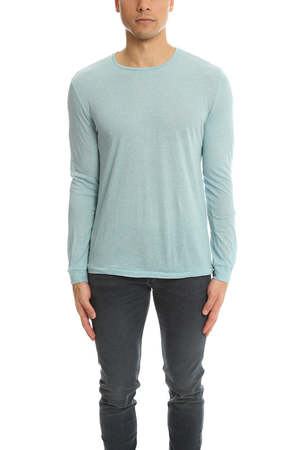 Crafted from Blue&Cream's unique 66 fabric, our standard long sleeve is exceptionally soft and breathable. Thin without being too grippy or sheer, this versatile tee serves as a comfortable first or single layer. - Color: Mint - 100% Cotton (Japanese Fabric) - Made in NYC - Dry Clean Only * Model is 6'1" wearing size M Productcode BC66-17