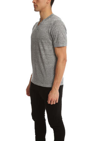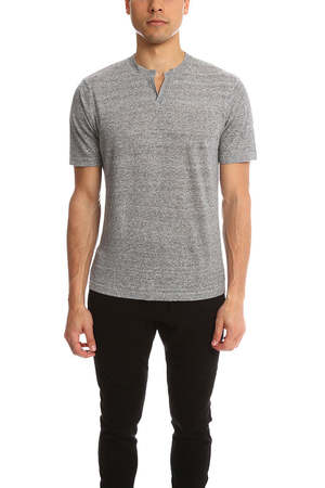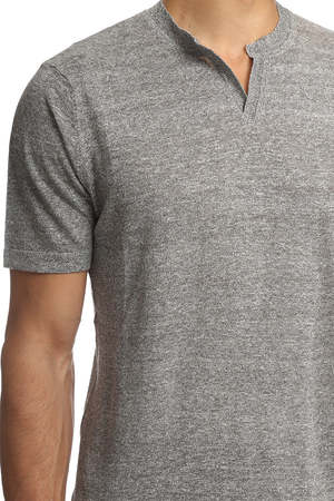 Air knit and crepe like fabric with nubby texture is a welcome layer even on hot or sticky days. Light weight linen blend featuring short sleeves and a modified v neck. A stylish stray away from your basic summer tee. - Color: Wolf Grey - 100% Linen - Dry Clean Only * Model is 6'1" wearing size M Designer BLUE&CREAM