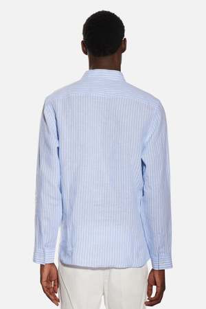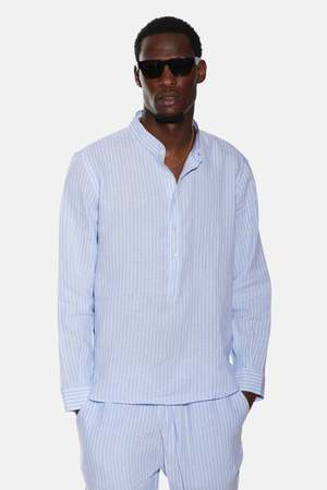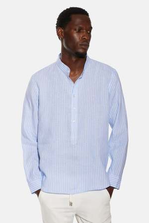 Gabri Linen Pop Over Shirt - Blue/White Stripe