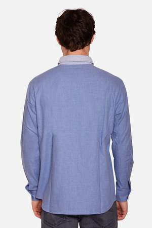 The Newman Combo Shirt is a signature classic button-up crafted from 100% Italian brushed cotton that feels like flannel. It features a denim slate body with a slate spread collar, contrast collar detailing, and mother-of-pearl buttons. A slight rounded straight hem makes it ideal for wearing untucked. Slim fit, fitting perfectly true to size. Perfect for layering or wearing on its own. - Color: Denim Slate - Slate spread collar - Button-up closure - Mother-of-pearl buttons - Composition: 100% Cotton - Slight rounded straight hem - Made in NYC Care: - Do not machine wash or tumble dry - Dry clean only Style #: WVBCM2489T-NOV MPN: WVBCM2489T-NOV SKU: BCMF25-26