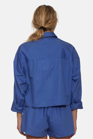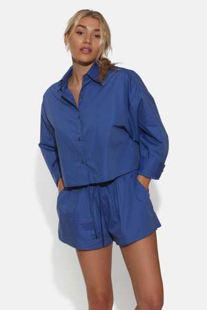 Wear it to work, wear it to dinner; the crisp structure speaks for itself. This crop button-down is a must-have item for every closet. Chic, classic, and elegant. - Button-down closure - Spread collar - 3/4 sleeves with adjustable button for a rolled-up look - Cropped boxy silhouette Perfect for summer lounging, the Halsey poplin short is made from the finest poplin. Detailed with a drawstring around the waistband and side pockets. - Color: Dark Chambray - Relaxed fit - Elasticated waistband with drawstring - Made in NYC - Made from fine poplin 100% Cotton - Hand wash cold - No bleaching, no tumble dry, lay flat to dry - Dry cleanable