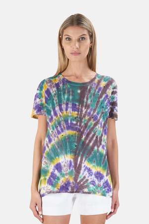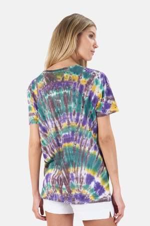 Since IRO's Clay Tee is one of our favorite basics we present it in our exclusive tie dye. With a delicate take on urban cool, this basic tee is reworked with distressed shredded holes. Made of linen, you can be sure it's uber soft. Perfect for layering and a definite upgrade to your basic tee collectsion. - Color: Tie Dye - 100% Linen - Made in Portugal - Hand Wash Cold Designer IRO x BLUE&CREAM EXCLUSIVE