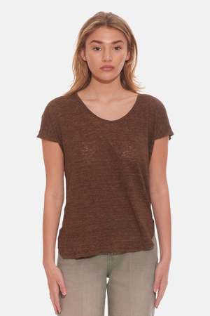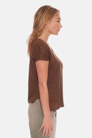 A relaxed fit and bibbed hem create a free-flowing, effortlessly sophisticated look with this scoop neck linen tee. Sleeveless drop shoulders form a cap sleeve and a heathered brown fabric completes the casual yet chic look. - Color: Brown - 100% Linen - Made in NYC - Hand Wash Cold Mpn BC.LIN_01 Sku BNCWFW23-05