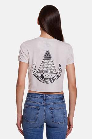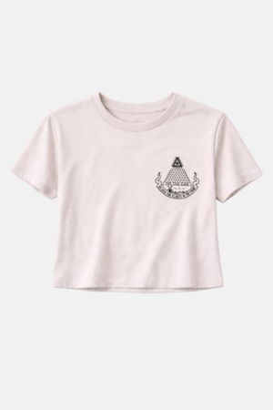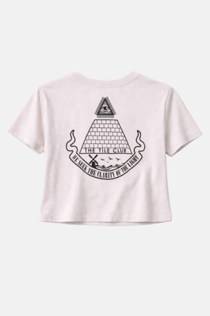 A modern cropped tee with a subtle edgefeaturing The Tile Club pyramid emblem. Soft, lightweight heather grey fabric keeps the look effortless while the statement back graphic makes it unmistakable. Color: Beige Details: - Cropped womens fit with a relaxed drape - Soft heather grey cotton blend feel for everyday comfort - Small pyramid emblem at the chest and large back graphic - Classic crew neckline and short sleeves Composition: 100% Cotton SKU: BCWF25-02.