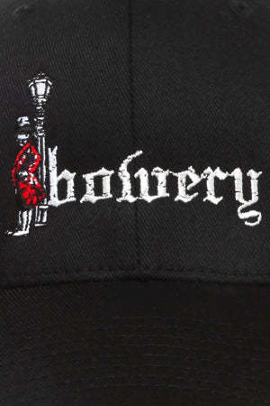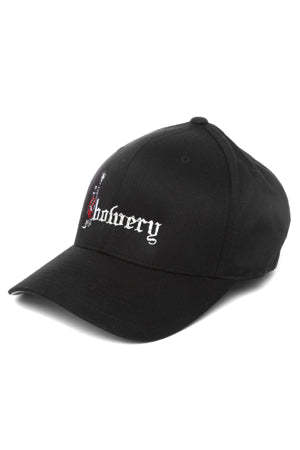 Flex-fit baseball cap with Red Man and Bowery logo2. Productcode BCBOWHAT