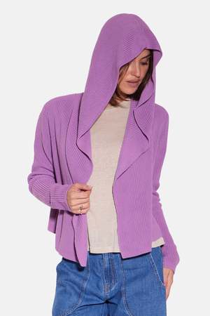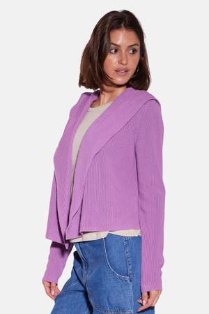 The throw-on-and-go layer youll live in. Made from soft shaker-knit cotton with a draped hood and open front. Perfect for summer nights and all-season wear. - Color: Purple Heart - 100% cotton - Open flyaway front - Oversized hood - Style #: 9264BL_508