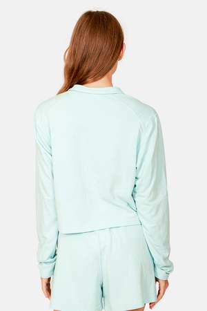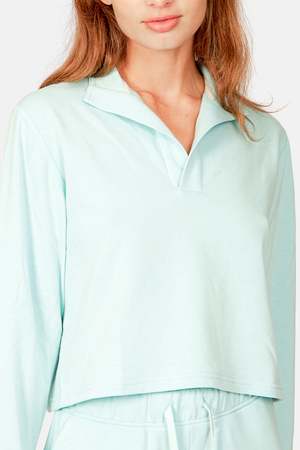 We use ultra luxe and lightweight Japanese brushed back fleece, which achieves a signature ultra soft hand finish that is almost unimaginable. This line of luxurious and elevated basics makes for ideal lounge wear with remarkable quality. - Color: Seaglass - Lightweight Japanese brushed back fleece - Signature Ultra Soft Hand Finish - Crop fit - Buttonless placket - 55% Cotton 32% Polyester 13% Rayon - Made in USA - Wash cold - Style #: WV20BC-T01-CRPD Mpn WV20BC-T01-CRPD Sku BNCWSU22-15 Productcode BNCWSU22-15