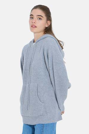 The Montecito Pullover is crafted in a textured waffle knit with a soft hand-feel and easy, oversized shape. Featuring a roomy kangaroo pocket and drawstring hood, it's your go-to for luxury lounging. 100% cashmere.