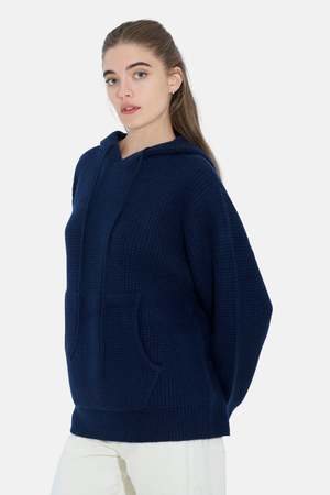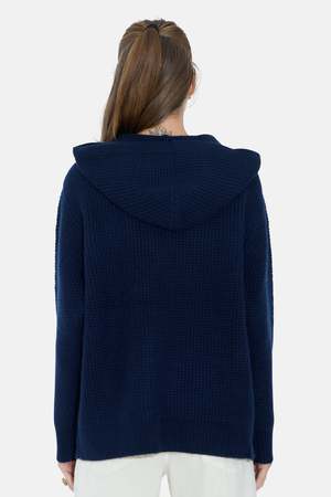 The Montecito Pullover is crafted in a textured waffle knit with a soft hand-feel and easy, oversized shape. Featuring a roomy kangaroo pocket and drawstring hood, it's your go-to for luxury lounging. Color: Navy 100% cashmere Style #: M25-201 Mpn M25-201 Sku BNCMPF25-08