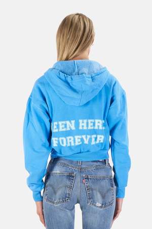 - Color: Blue - Cropped profile - Drawstring hood - Front zip closure - 100% Cotton - Made in USA - Style #: BNCWSP21-15 - Machine wash cold Productcode BNCWSP21-15 Designer Blue&Cream