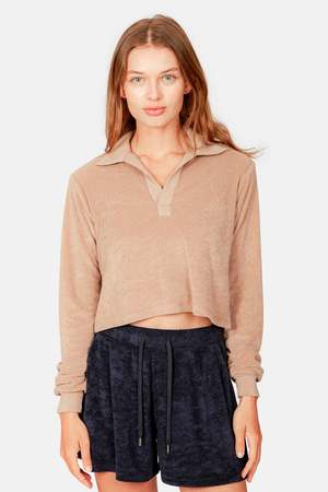 - Camel - Custom-milled super soft light weight terry - Cropped relaxed fit long sleeve - Self reversed cuff & hem - Buttonless placket - Made in USA - 45% Cotton, 35% Polyester, 20% Rayon - Machine wash cold - Style #: WVBC22-WT102 Mpn WVBC22-WT102 Sku BNCWSU22-24 Productcode BNCWSU22-24 Alternative product 7 gid://shopify/Product/6973881712780 Alternative product 6 gid://shopify/Product/7007142477964 Alternative product1 gid://shopify/Product/6973881811084 Alternative product2 gid://shopify/Product/7007142772876 Alternative product3 gid://shopify/Product/6973881778316 Alternative product4 gid://shopify/Product/7104328499340 Alternative product5 gid://shopify/Product/6973881745548 Color hex code #C19A6B