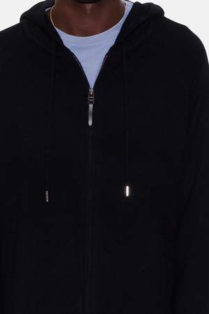Our new Leo zip hoodie features the softest cashmere thats both lightweight and cozy. it's convenient zip-up design allows for effortless layering, making it ideal for styling over an elevated tee. Whether your heading out for a brisk autumn day or simply want to add a touch of refinement to your outfit, We have you covered! - Color: Black - Zip Closure - Hooded sweatshirt - Side pockets - Drawstring adjustable neck - Slim Fit - Great for layering - Wear over a t-shirt - 100% Cashmere - Style #: TC19002-P CARE INSTRUCTIONS: - Dry Clean only Mpn WV20F010T Sku TILMFW23-04