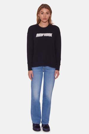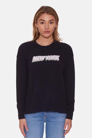 This sweater is crafted from a lightweight blend of cotton and cashmere. The blend offers a luxurious feel against the skin. One of the stand out features of this sweater is the "New York" inscription on the chest, whether you're strolling through the streets of New York or simply want to express your urban chic style. - Color: Navy Combo - Long Sleeve - Crew Neck-line - Ribbed Neck-line - Ribbed Body and sleeve - "NEW YORK" Graphic across chest - Made in NYC - 95% Cotton, 5% Cashmere - Style #: 83193BC CARE INSTRUCTIONS: - DRY CLEAN ONLY Mpn 83193BC_977 Sku BNCWSP24-01