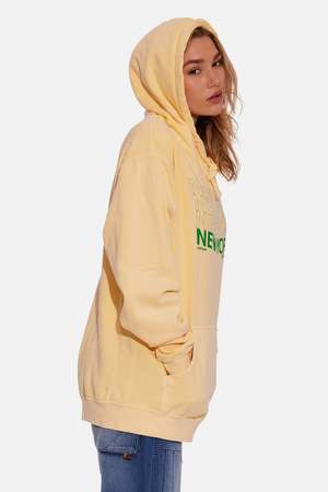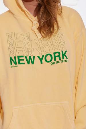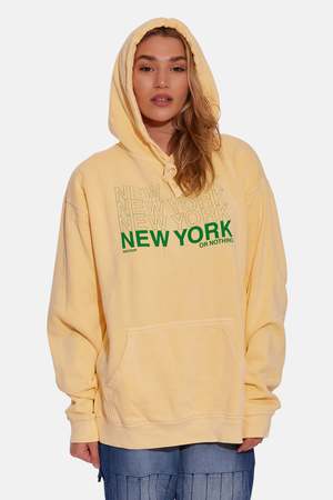 NEW YORK OR NOTHING! - Color: Butter/Green - Hooded pullover with drawstring - Kangaroo pockets - Ribbed body and sleeve hem - Super soft brushed fleece inside for an ultra cozy feel - "NEW YORK, OR NOTHING" Graphic in the front - Made in NEW YORK - 100% Cotton - Style #: OFRH-BUTTER Mpn OFRH-BUTTER Sku BNCMSP24-19