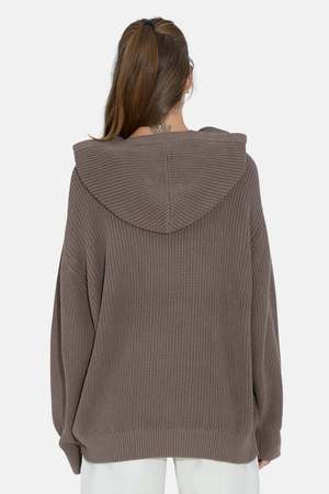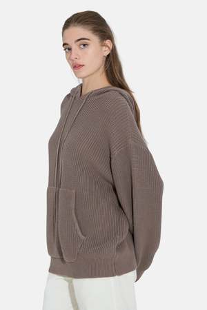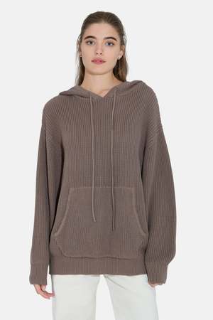 The Perry Hoodie by Blue&Cream is knit from 100% cotton in a chunky rib texture that holds its shape and feels just as good as it looks. Featuring a roomy hood, front pocket, and relaxed silhouette, its your everyday go-to. - Color: Taupe - Kangaroo pockets - Drawstring hood - Oversized fit - 100% cotton - Style #: M25-901