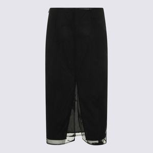 Women > Clothing > Skirts Black skirt from Blumarine featuring an elasticated waist, butterfly embroidery, transparency, a back slit, and a midi length. Composition: 52% Polyamide, 48% Polyester.