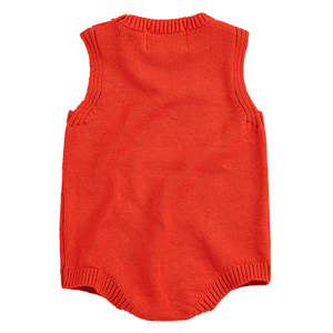 Knit romper with a knit strawberry pattern on the chest. - Button closure at the shoulder and between the legs - Ribbed knit trim - Sleeveless 100% Organic Cotton Machine wash at 30C on gentle cycle. Do not tumble dry, or dry clean. B126AB151 Type: Dresses + Jumpsuits