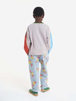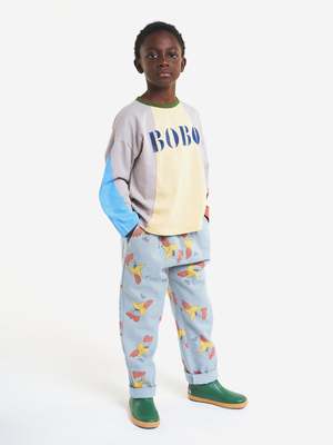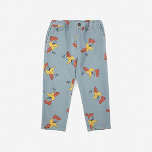 New from Bobo Choses for Autumn/Winter 2022. A fun take on trousers, this pale blue grey version features an allover rooster print. Elasticized waistband and faux button make these deceptively easy to pull on. Finished with ample pockets at side and back. - Unisex kid's pants - 100% cotton - Color: Light Blue Grey - Elastic waistband - Decorative button - Side seam pockets and back patch pockets - Relaxed, loose fit - Full length - Made in Spain - Model is 132 cm tall and is wearing 8Y/9Y size.