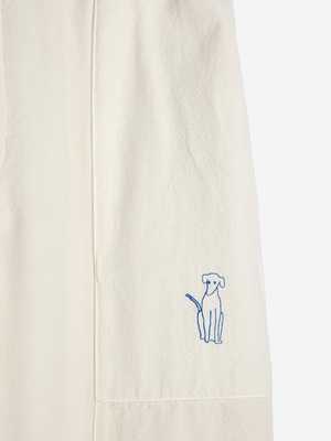 Swoon-worthy softness and satisfying pleats make these organic cotton trousers a spring essential. An embroidered blue dog adds a playful statement. Materials: 100% Organic Cotton Fit: True to size Story: From an old toy factory in Barcelona, Bobo Choses dreams up garments that celebrate Spanish craftsmanship. Learning from the know-how of local artisans, their creativity and stewardship allows Bobo to bring us products that reduce our collectsive environmental footprint and embrace mindful production methods.