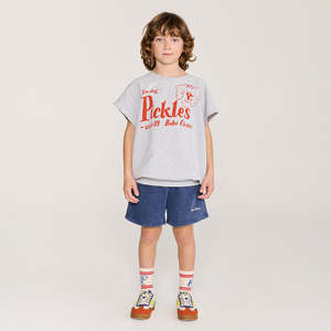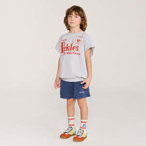 Bobo Choses was created in 2008 to be a friendly clothing brand that could speak to children in their own language. They celebrate being kids stuck inside adults, acting seriously funny and caring for the world and everything that is part of it. "Pickles" is a nostalgic lifestyle collectsion inspired by slow, rebellious summers, celebrating countryside adventures, berry-stained hands, and the joy of imperfect, playful moments. - Sweatshorts - "Bobo Choses" embroidered on the leg - Side seam pockets - Patch pocket on the back - Elasticized waist with internal drawstring 66% Organic Cotton, 17% Recycled Cotton, 17% Cotton Machine wash at 30C on gentle cycle. Do not tumble dry or dry clean. Style code: B126AC059.