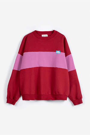 Bobo Choses relaxed crewneck sweatshirt in red pink color block. Pair with the matching shorts for a full set. Style code: B126AD035.