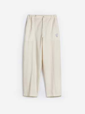 Offwhite pants. Designed for a relaxed fit, cut for a straight-leg fit, cropped length, non-stretchy fabric and designed with pockets. Fits true to size; take your normal size. Composition: 100% Organic Cotton. Model: 176 cm / 5 7.7 tall, wearing size S. Made in Spain.