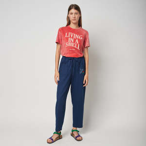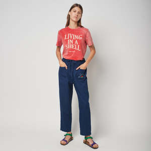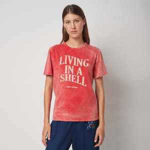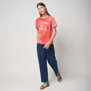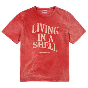 Bobo Choses was created in 2008 to create a friendly clothing brand that could speak to children in their own language. They celebrate being kids stuck inside adults; acting seriously funny and caring for the world and everything that is part of it. Living in a Shell. We are sensitive, caring and shy. We are not made for the spotlight, but shine under a different light. We are quiet because we are peaceful. Our eyes meet everyone else's. We like making everyone around us comfortable. We enjoy our ears, so we listen more than we talk. We like to dress up in costumes and wear masks. We prefer the sea over the city. We make the world a gentler place. We live inside our shell. Our shyness is a character trait, not a flaw. - Relaxed fit organic cotton t-shirt - Faded red design - "Living in a Shell" print on the front - Short sleeves 100% Organic Cotton Machine wash at 40C on gentle cycle and tumble dry, or dry clean.