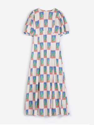 The Pear Dress in Ecru Multi from Bobo Choses is an easy, everyday cotton style with a relaxed, floaty feel. Designed with soft volume through the body, it features short puff sleeves, a gently gathered waist and the brands playful pear print throughout. Lightweight, breathable and effortless to wear perfect for warm days or easy layering. - 100% Cotton - Lightweight woven fabric - Relaxed fit - Midi length - Short puff sleeves - Gathered waist detail - All-over pear print Made in Spain.