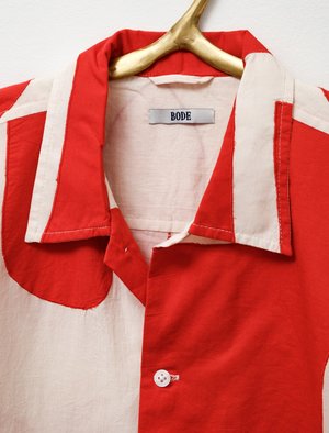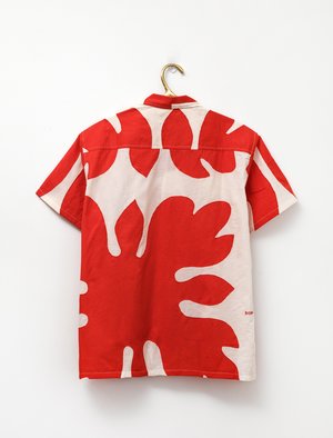 A standout from the SS20 collectsion, this Matisse-like pattern is actually inspired by 19th century Hawaiian quilts, and is made with fabric cut-outs (how apropos!). It is a classic camp collar shirt; slightly boxy with a shorter sleeve. Wear it open or fully buttoned. - Made in India - 100% cotton - Dry clean - Fits true to size