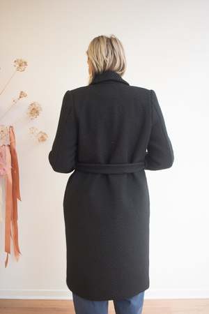 Elevate your wardrobe with this elegant wool coat, designed for a sophisticated and contemporary silhouette while still prioritizing warmth in the winter months. Its long, straight cut and slightly oversized, structured shoulders create a refined yet modern shape, while the wide lapel collar adds timeless polish. Practical details include integrated side pockets and a removable tweed belt for versatile styling. Fully lined with silky soft Kasha, this coat feels as luxurious as it looks. 43% Acrylic, 43% Virgin Wool, 1% Elastane, 6% Polyester, 4% Polyamide, 3% Viscose. Made in Montreal Dry Clean Only