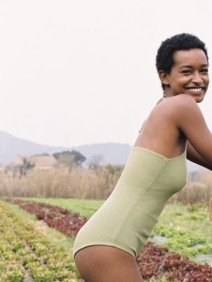Ribbed halter neck bodysuit. Made from premium soft Italian fabric. Also available in Black.