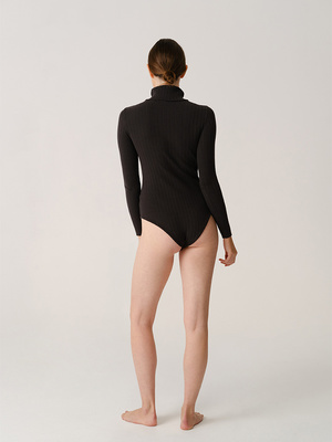 This knitted bodysuit is a versatile and comfortable staple, perfect for winter coziness. Featuring long-sleeves, a roll-neck and 3 press stud fastening at the bottom.
