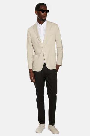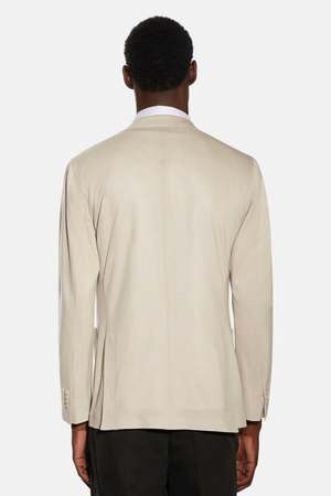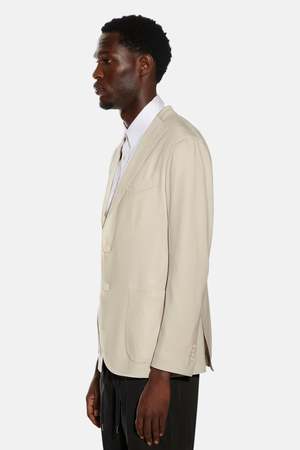 The K-Jacket is the iconic Boglioli item, a must have for every man who seeks comfort, versatility and elegance in a garment. The excellent fit is due to the double vent on the back and to the fact that the jacket is unstructured. This Made in Italy product is in 100% black lightweight wool hopsak, its embellished by a two buttons fastening, crpe fabric with a chevron pattern and by notched lapel. - Color: Beige - Slim fit yarn-dyed jacket - Notch Lapel - Single breasted jacket - Double vent on the back - Unstructured - Made in Italy - 100% Wool - No bleaching - Iron max 110C - No tumble dry - Dry clean recommended - Style #: N1302E - 0215