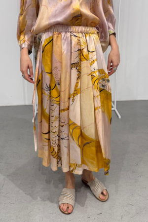 100% silk satin skirt with an elastic waist.