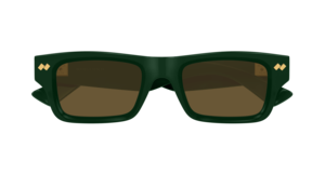 The Dizzy Square Sunglasses by BOTTEGA VENETA feature a bold square silhouette in a striking green color. Made in Japan from 100% acetate.
