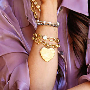 Bold and unapologetically you. The Monroe Bracelet features an oversized textured heart charm paired with our Blair oval statement chain. Striking on its own and even better layered.