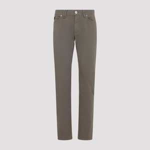Men > Clothing > Jeans Brioni Meribel grey stretch cotton 5-pocket jeans featuring a mid-rise, belt loops, front button and zip-fly fastening, a branded leather label at the back of the waist, and a slim fit.