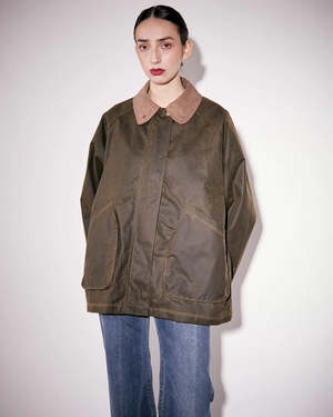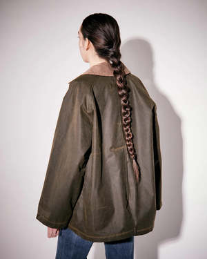The Davonna is an oversized waxed organic cotton outerwear piece with a relaxed A-line fit, made in Birmingham, United Kingdom. It features a classic corduroy collar, large curved front pockets, a concealed snap-button closure, and a two-way zipper for a clean finish. Water-repellent and windproof, it also includes an additional snap-button closure at the collar for extra protection. For a long lifespan, regularly rewax the outer fabric. Main features - Water-repellent and windproof fabric - Two-way zipper - Relaxed A-line fit Details - Waxed organic cotton construction - Classic corduroy collar - Large curved front pockets - Made in the United Kingdom Care for your cotton Cotton garments can be washed, dried, and heated several times without showing notable signs of wear. Instead of using bleach, you can easily use lemon juice for stains and vinegar for bad odors. This is beneficial for both your garments and the environment.