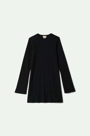 Simple lines for an elegant and timeless look. Elegant and sophisticated with a touch of style, this knit dress combines a classic cut with modern details. Slightly flared sleeves and a mid-thigh length give it a retro-inspired silhouette, while the soft knit and high collar make it comfortable for cooler weather. 175 gsm pointelle cotton.
